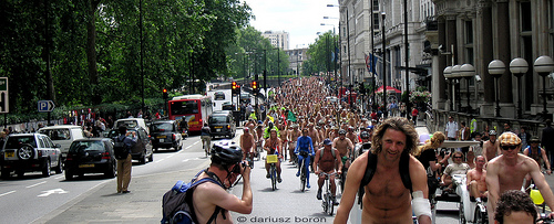 People in London yesterday were surprised to see hundreds of cyclists in varying degrees of nakedness riding through the city as the annual London Naked Bike Ride took place, one of many other rides as part of World Naked Bike Ride.