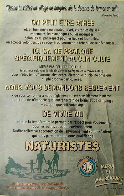 J'ai été dans pleind de pays, l'allmùagne la hollande, l'espagne et visiblement l'on dirrais que l'on trouve se genrede mentalité "non" naturiste parmi un petit nombre de NUDISTE français.