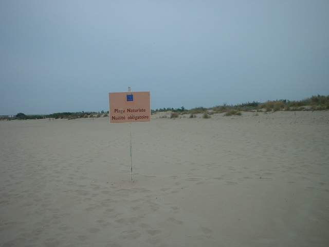 Plage naturiste libre au panneau Marseillan. Sur la plage nudité à 95%