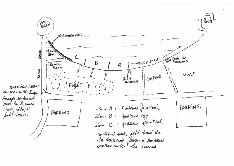 Donc avis aux naturistes aimant la nature, à vos cycles et à vos chaussures ! Pour info, la plage est à 1km minimum des deux premiers parkings, le centre héliomarin est à 2,5km de la barrière.