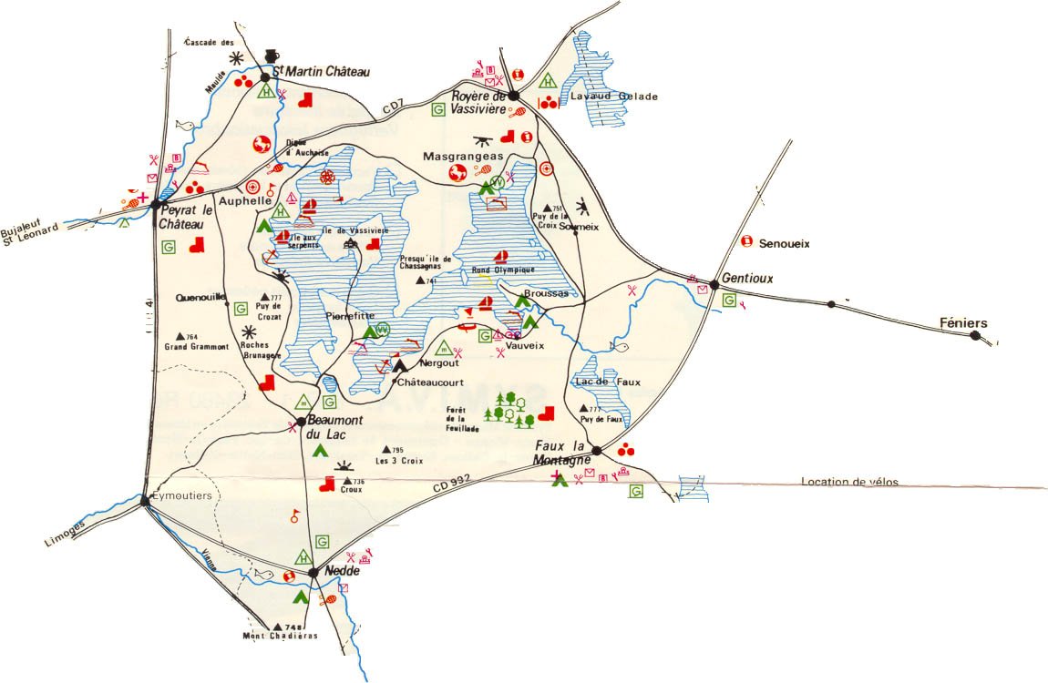 Localités principales: 23460 Royère de Vassivière, 87470 Peyrat-le-Château.